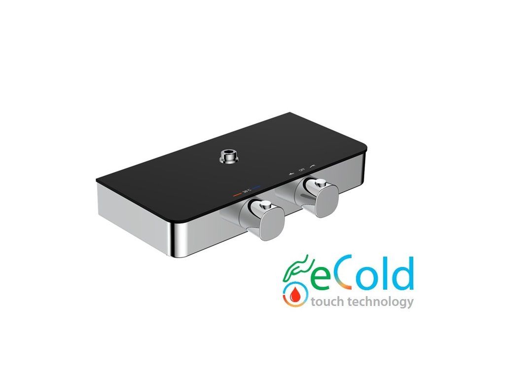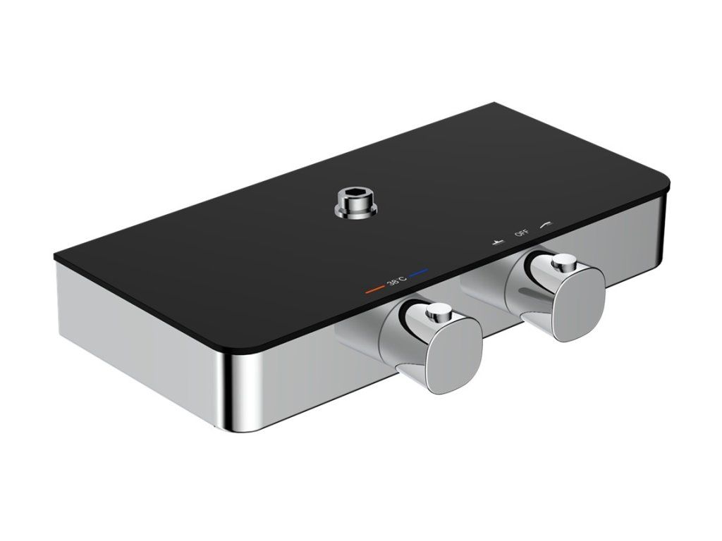 batéria AQS sprchová termostatická pre 2 odberné miesta, bez príslušenstva, s čiernym sklom, FORNAX