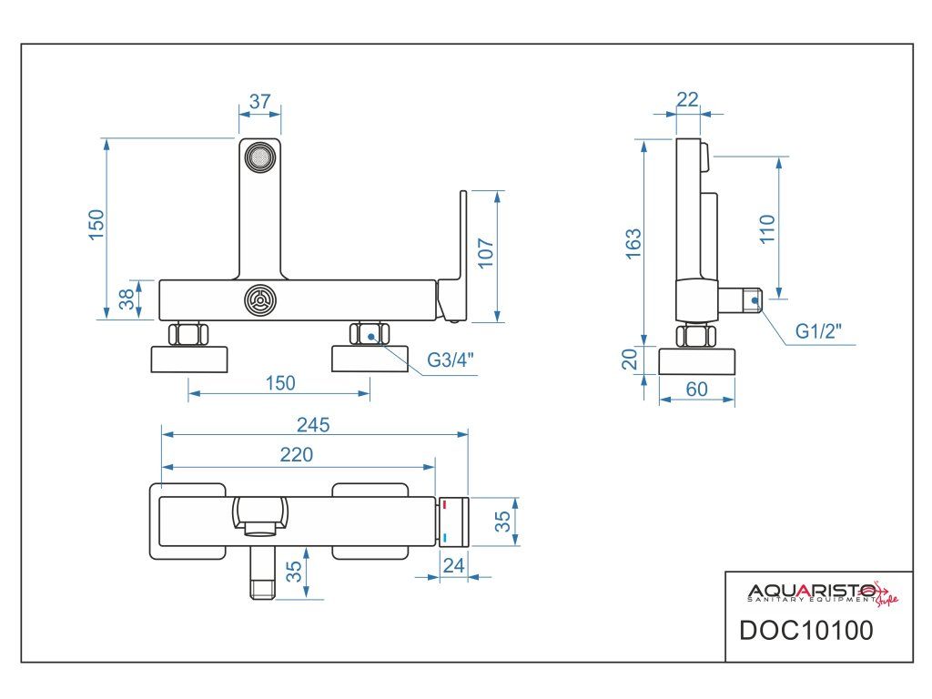 batéria AQS vaňová stenová bez príslušenstva, DOCKS