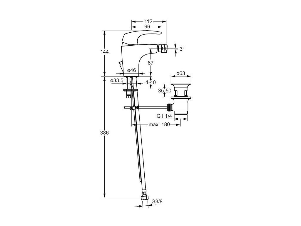 batéria bidetová stojanková, s odtokovou súpravou, DISC