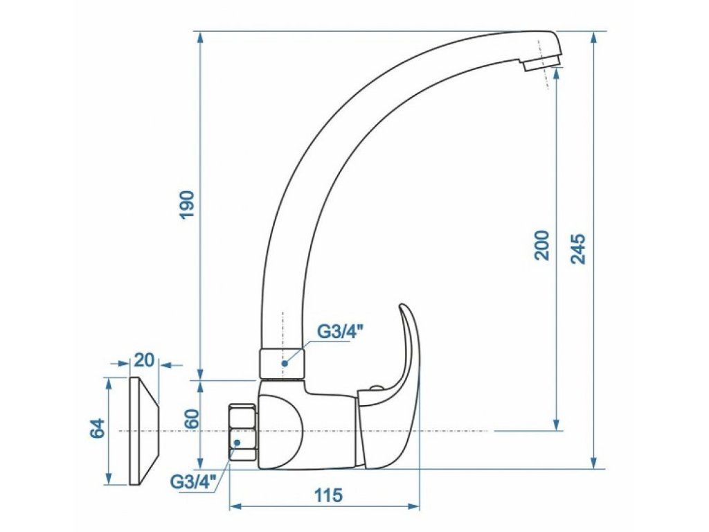 batéria drezová stenová s horným liatym "U" výtokovým ramenom, rozstup 100mm, PERLA