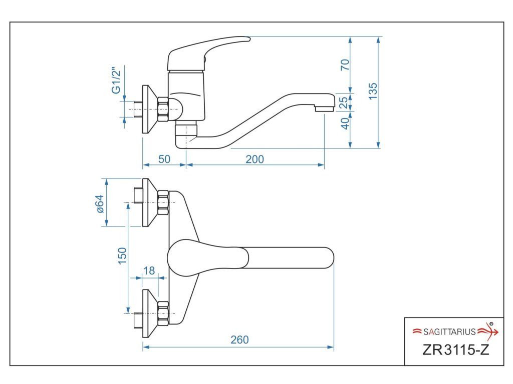 batéria drezová stenová s liatym 20cm "Z" výtokovým ramenom, ZORA