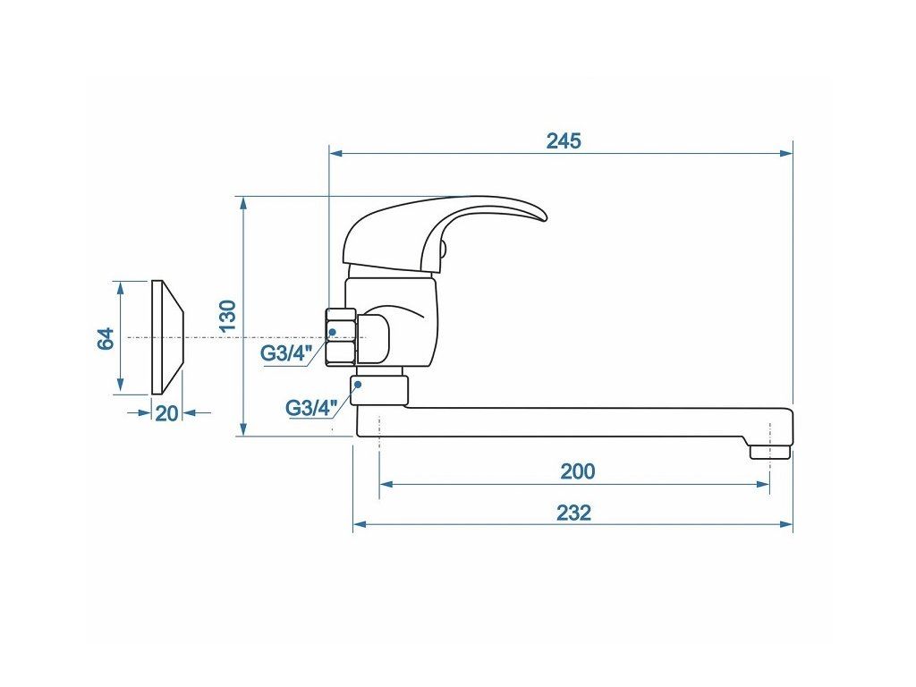 batéria drezová stenová s rovným liatym 20cm výtokovým ramenom, rozstup 100mm, satén, PERLA