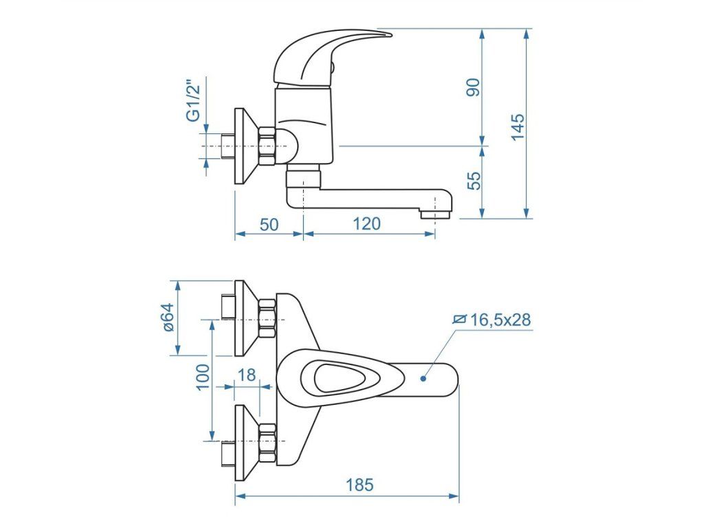 batéria drezová stenová s rovným liatym krátkym 12cm výtokovým ramenom, rozstup 100mm, MOON