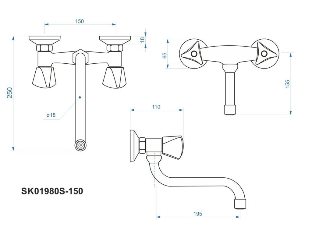 batéria drezová stenová s trubkovým 18cm "S" výtokovým ramenom, MADISON