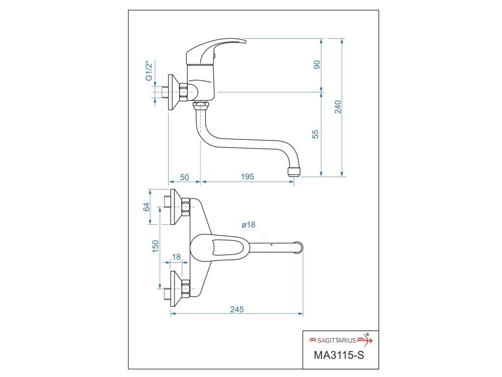 batéria drezová stenová s trubkovým 20cm "S" výtokovým ramenom, MARS
