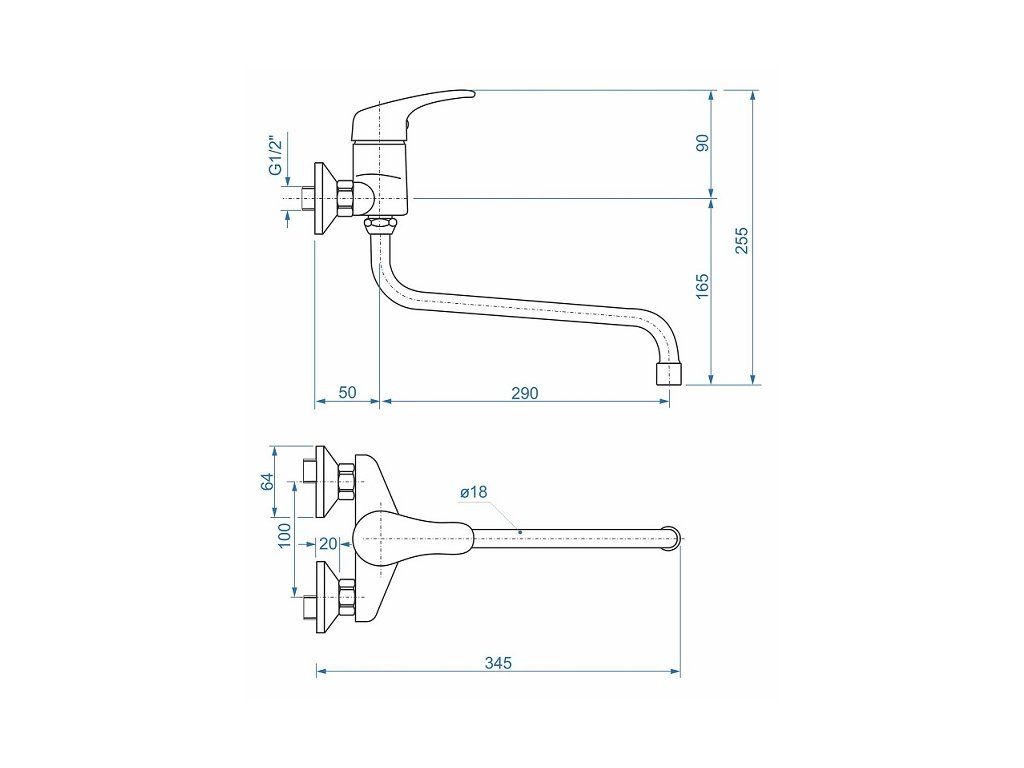 batéria drezová stenová s trubkovým 30cm "S" výtokovým ramenom, rozstup 100mm, ZORA
