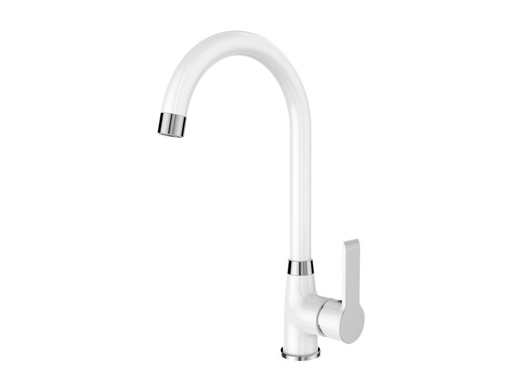 batéria drezová stojanková s horným liatym "U" výtokovým ramenom, VENTURA BIELA LESKLÁ-CHRÓM