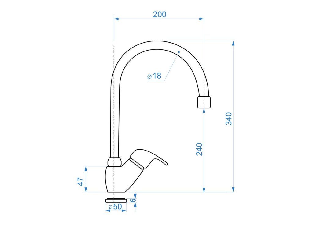 batéria drezová stojanková s horným trubkovým "T" výtokovým ramenom, ZORA