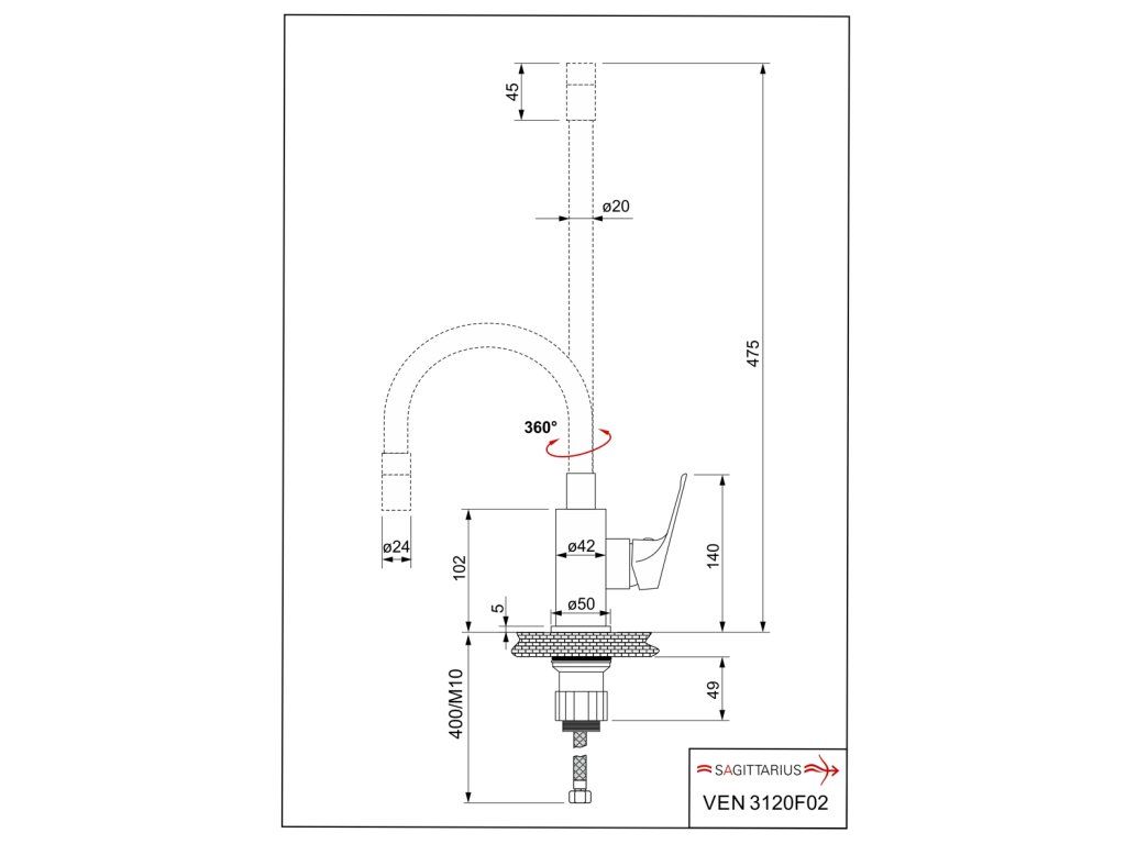 batéria umývadlová stojanková s bielym flexibilným ramenom bez odtokovej súpravy, VENUS