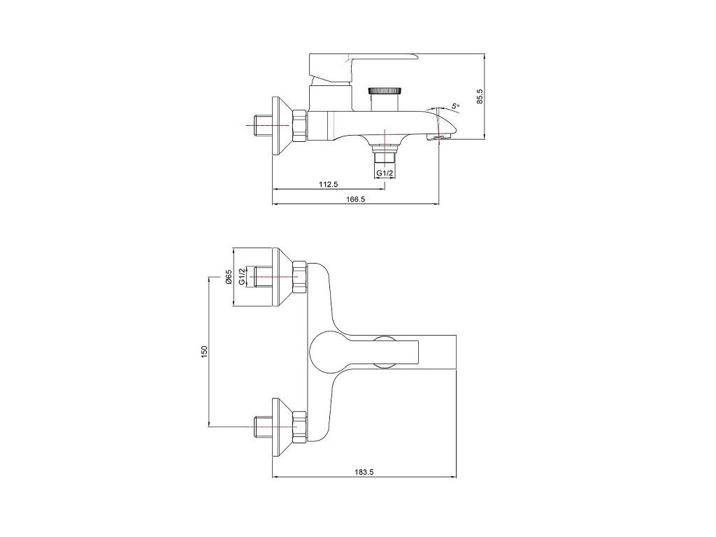 batéria vaňová stenová s keramickým prepínačom, bez príslušenstva, VENTURA BIELA LESKLÁ-CHRÓM