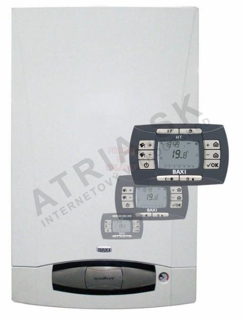 Kotel s integrovaným nerezovým zásobníkem (60 litrů) Součástí kotle je panel Baxi pro ovládání a programování režimu vytápění a ohřevu TUV s týdenním cyklem a vestavěná 2litrová expanzní nádoba na TUV. Tento panel lze z kotle vyjmout a umístit jej jako pokojový regulátor. Pokud je připojena externí sonda, slouží jako programátor pro vestavěnou evitermní regulaci. Řídicí jednotka a připojovací šroubení jsou součástí dodávky. Další významné vlastnosti kotlů: vestavěný nerezový zásobníkový ohřívač TUV, plynulá modulace výkonu, autodiagnostika, elektrické krytí IP X5D, patentovaný systém odtahu spalin AFR pro optimalizaci účinnosti spalování.