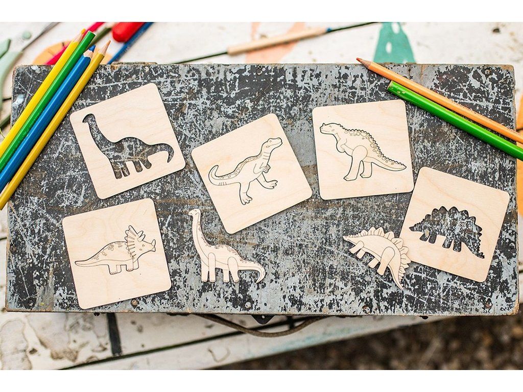 BeWooden Lišiacke vkladacie puzzle 4 v1 - Dino