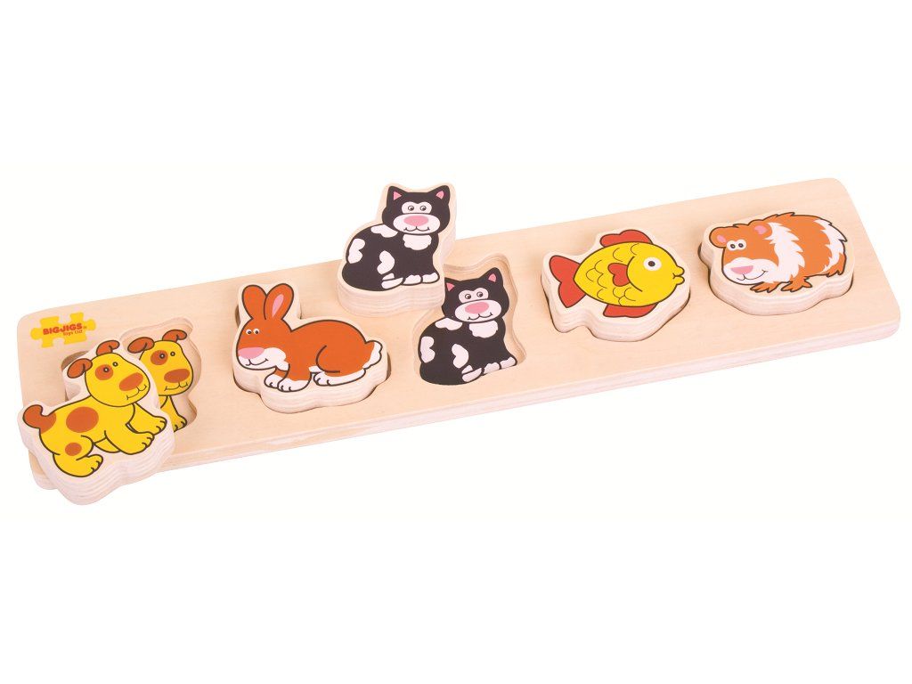 Bigjigs Baby Drevené vkladacie puzzle domáce zvieratá
