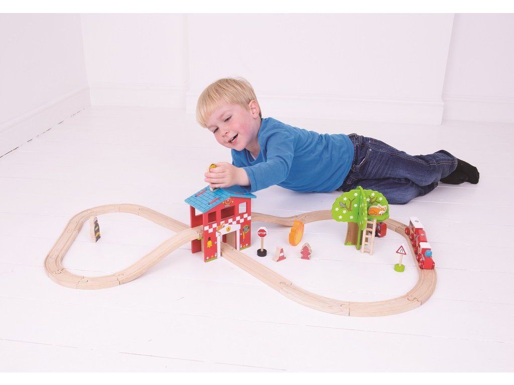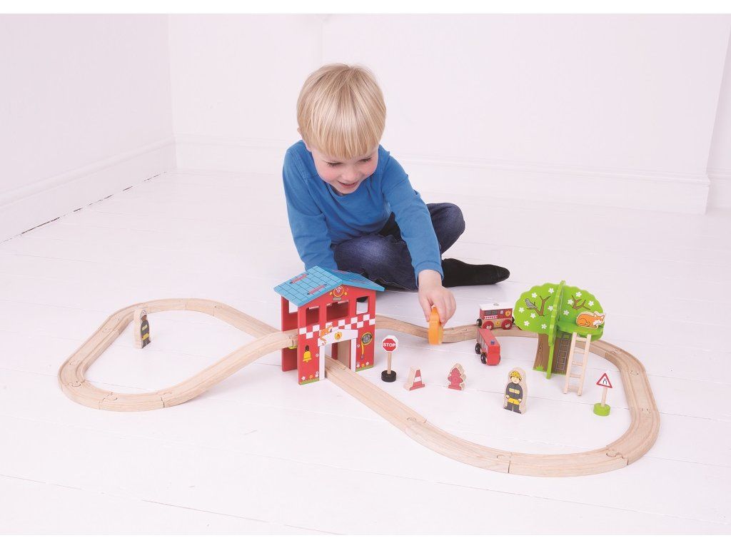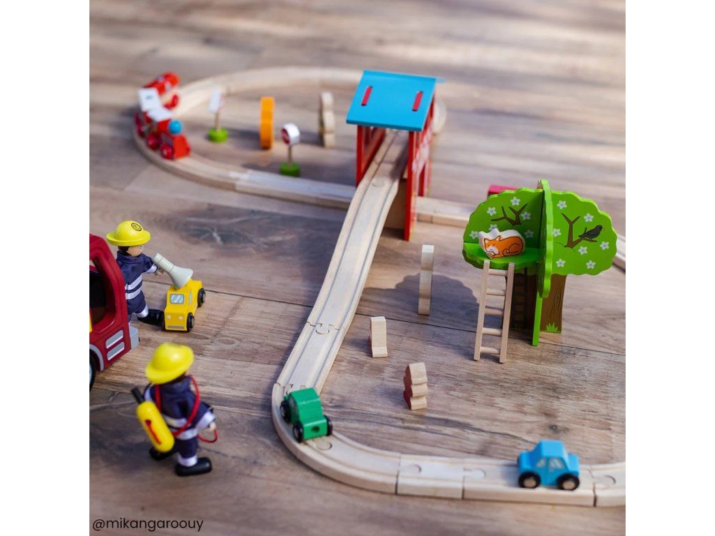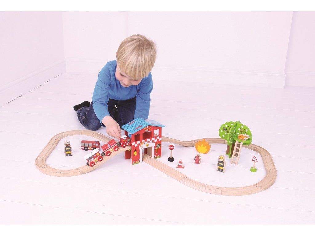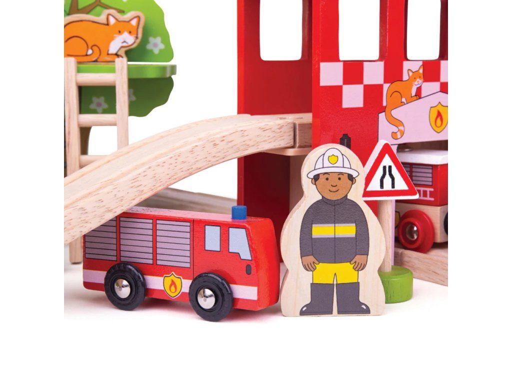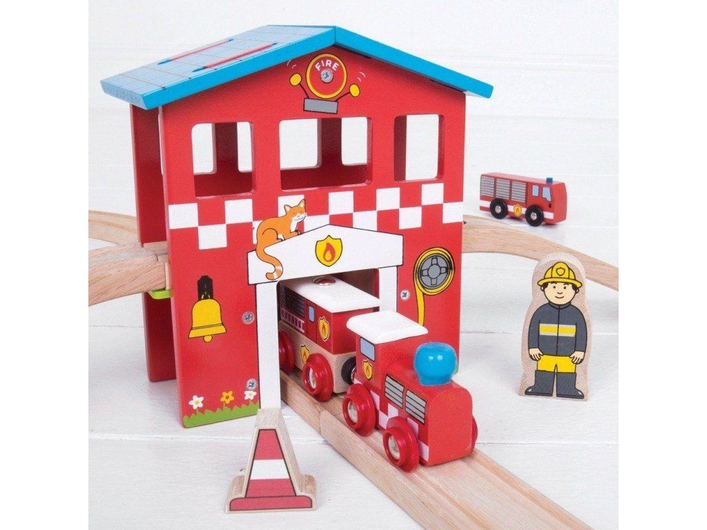 Bigjigs Rail Drevená vláčikodráha hasičská stanica