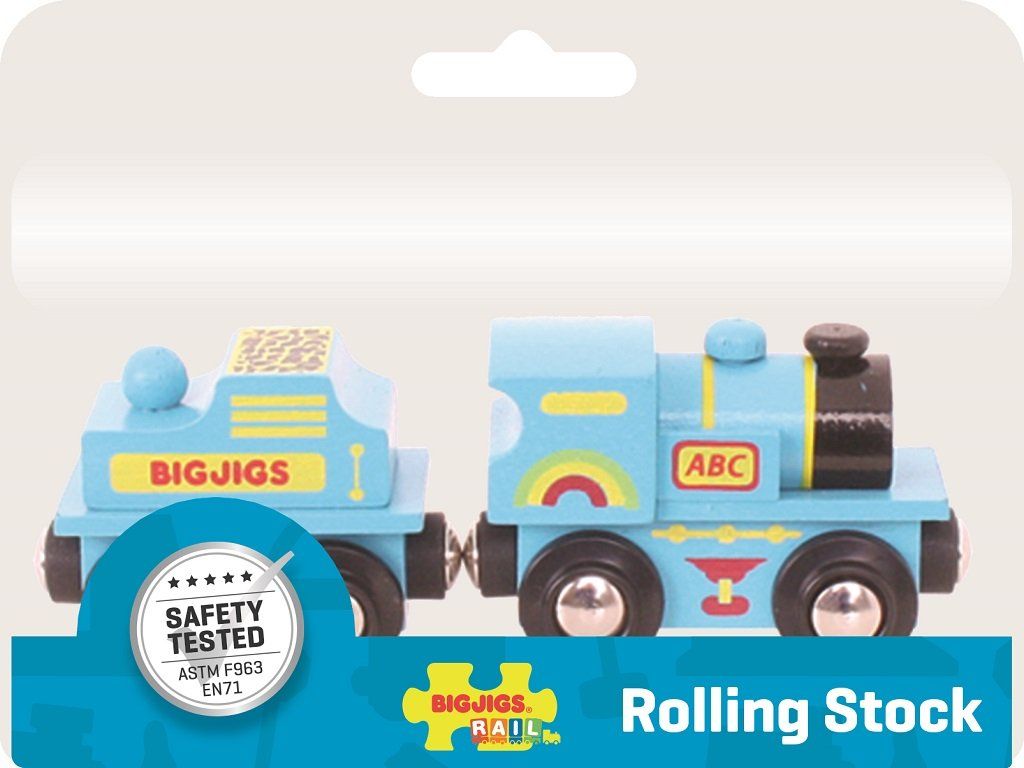 Bigjigs Rail Modrá mašinka s tendrom + 2 koľaje