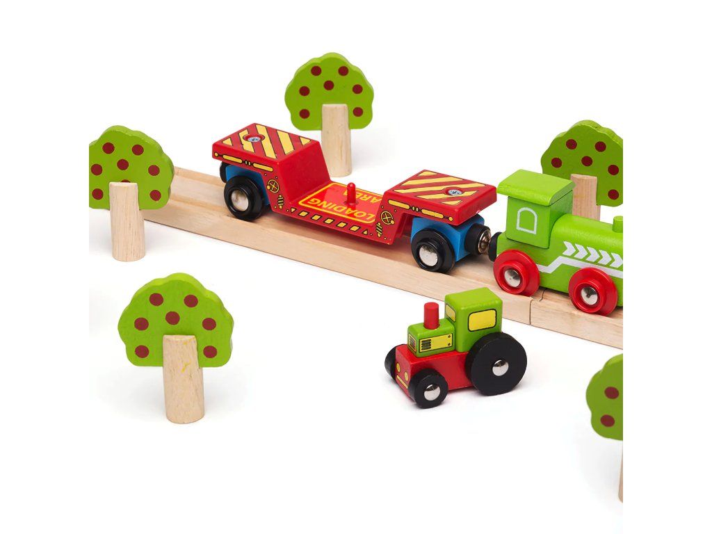 Bigjigs Rail Vagón s traktorom + 2 koľaje