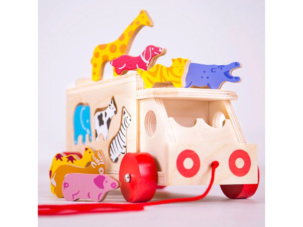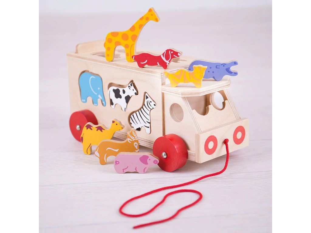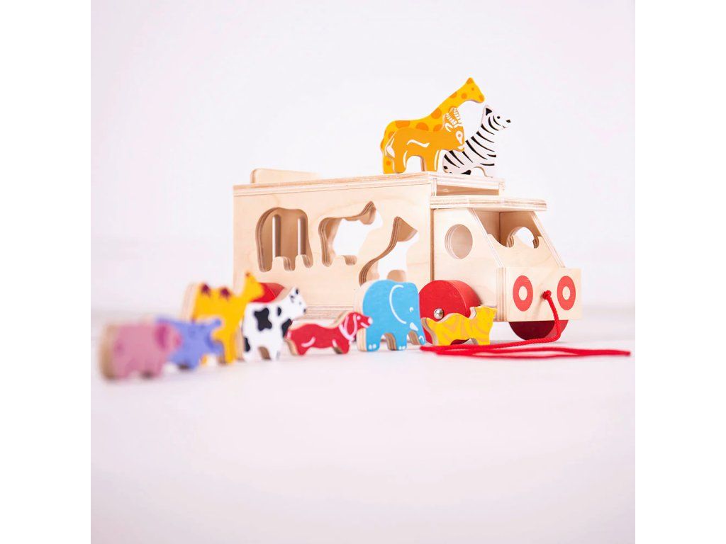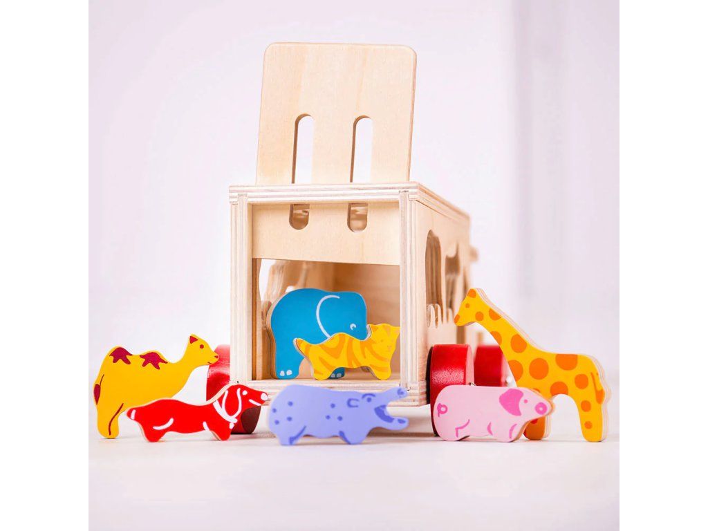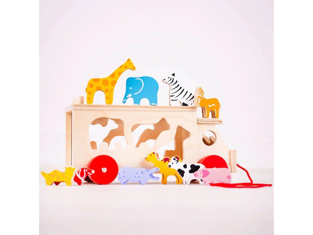 Bigjigs Toys Drevené auto so zvieratkami