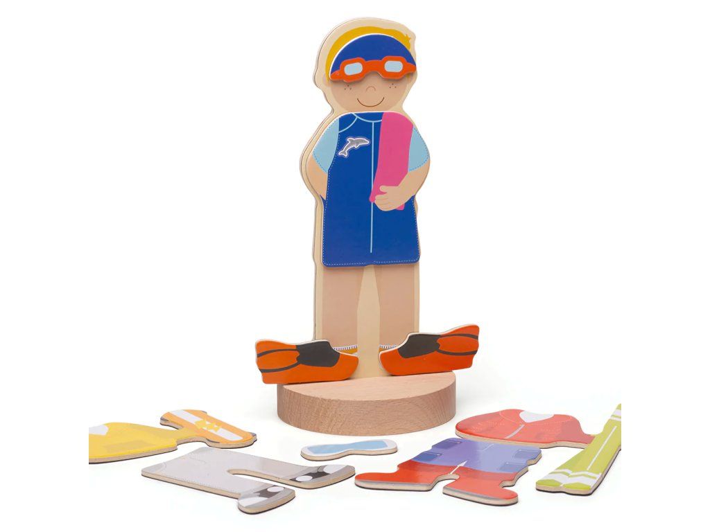 Bigjigs Toys Magnetické obliekacie puzzle športové aktivity