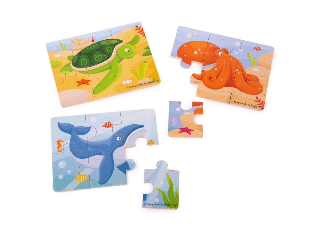 Bigjigs Toys Puzzle 3v1 morské zvieratká