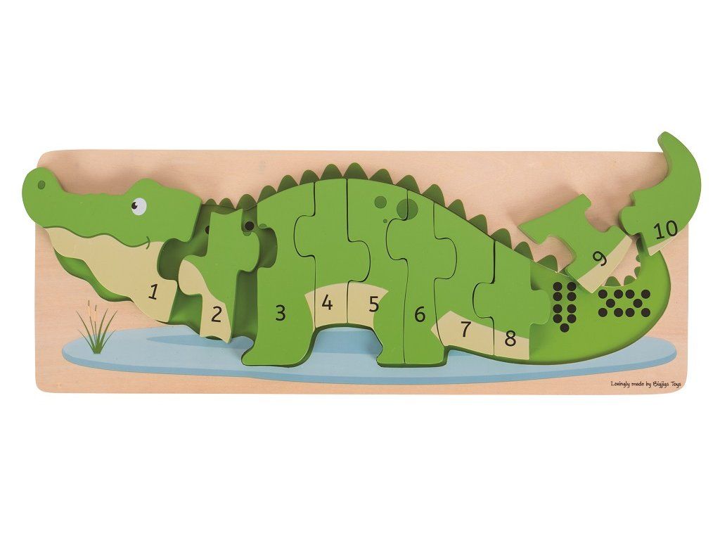 Bigjigs Toys Vkladacie puzzle krokodíl s číslami