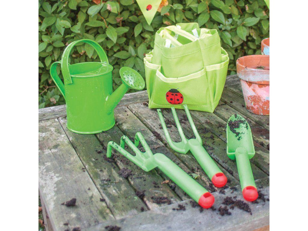 Bigjigs Toys Záhradná sada náradia plastová zelená 3ks