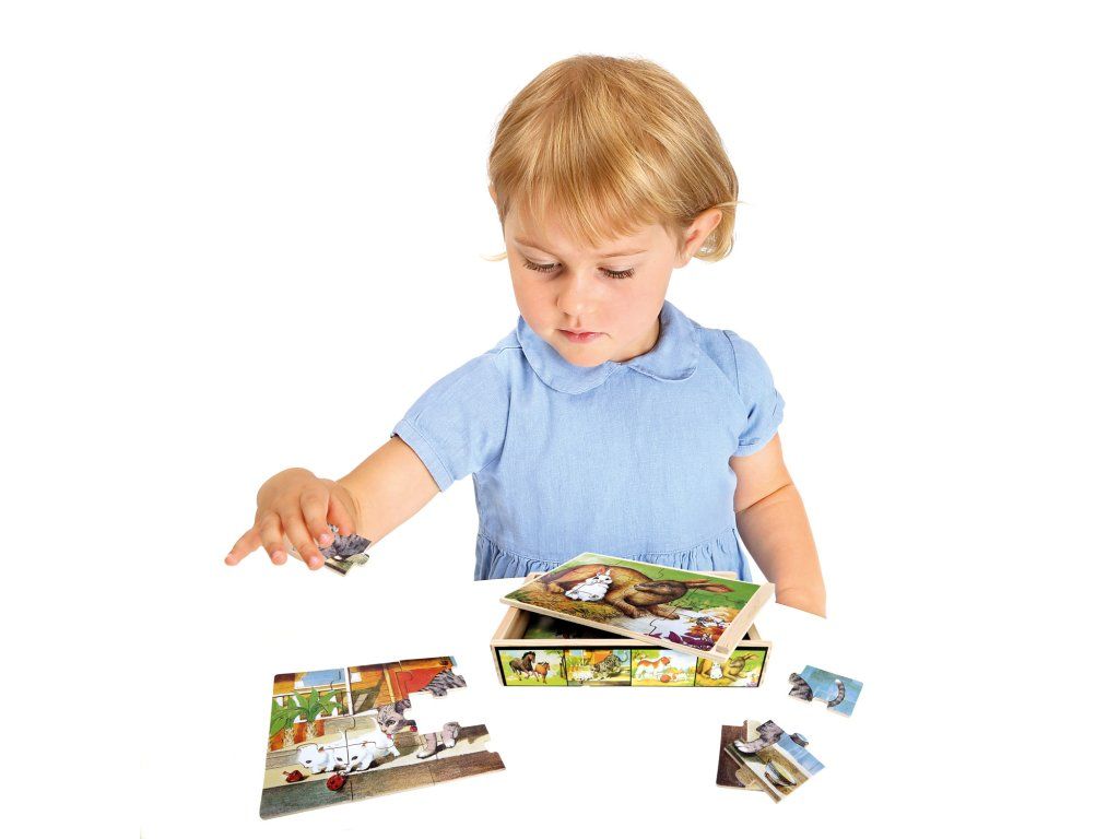 Bino Drevené puzzle v krabičke zvieratka