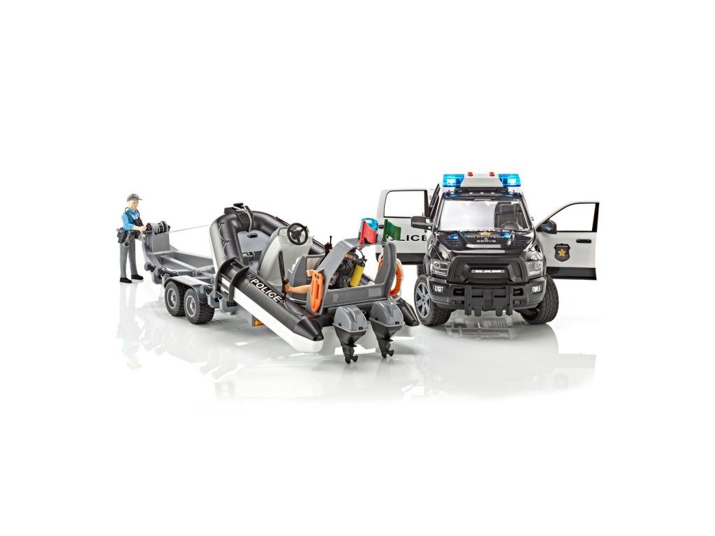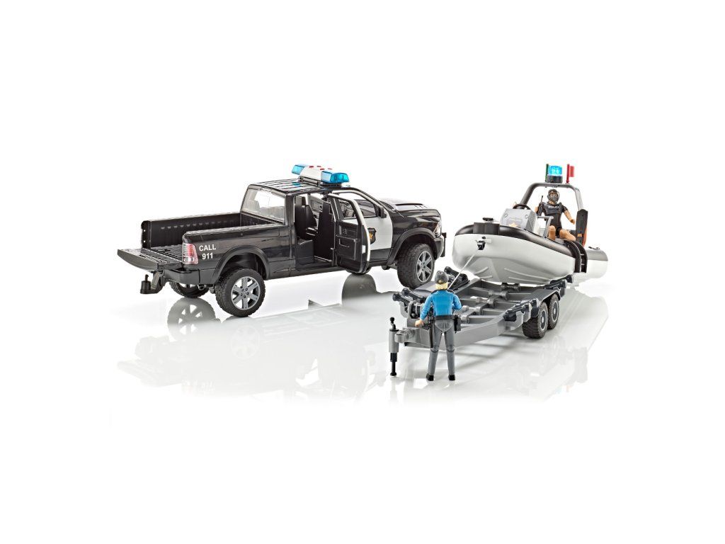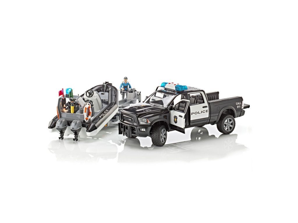 Bruder RAM Policajné auto s člnom a s 2 figúrkamii
