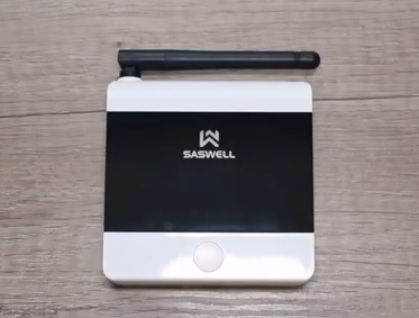 Minimalistický přijímač ze sady Saswell KIT TRV obsahuje anténu a tlačítko napájení na přední straně. Po aktivaci se rozsvítí kontrolky LED, které indikují napájení, ohřev a samotné připojení.