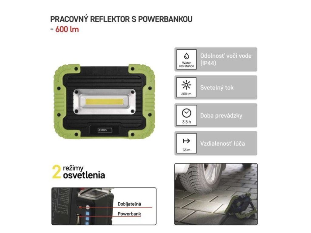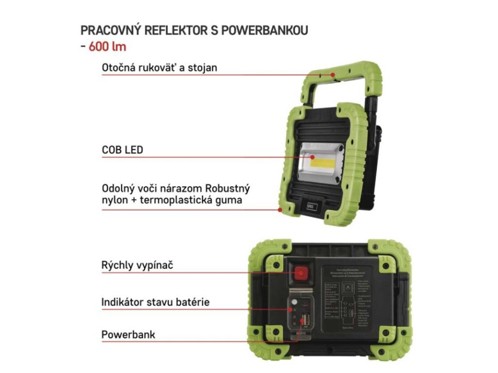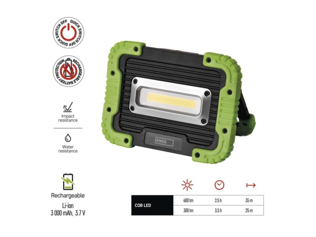 COB LED nabíjací pracovný reflektor P4534, 600 lm, 3000 mAh