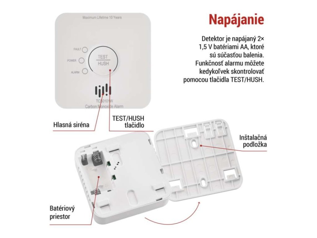 Detektor oxidu uhoľnatého v miestnosti TCS0101W
