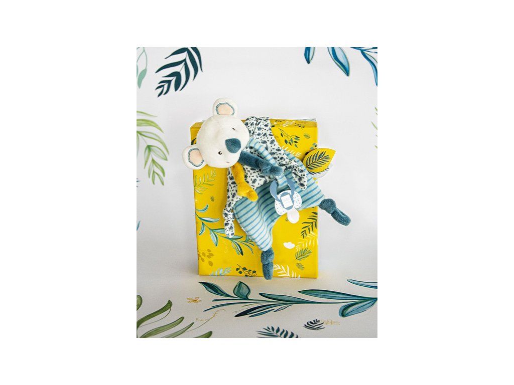 Doudou Darčeková sada - Hračka s úchytom na cumlík medvedík kráľ 15 cm
