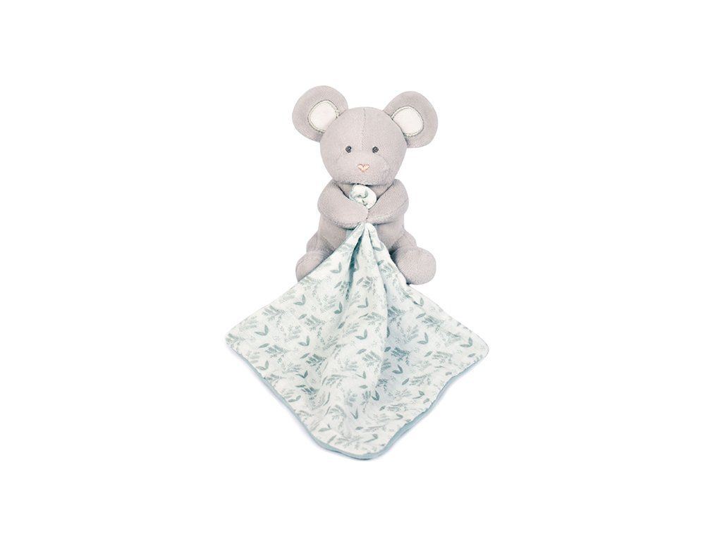Doudou Darčeková sada - Plyšová myška s dečkou z BIO bavlny 15 cm zeleno-biela