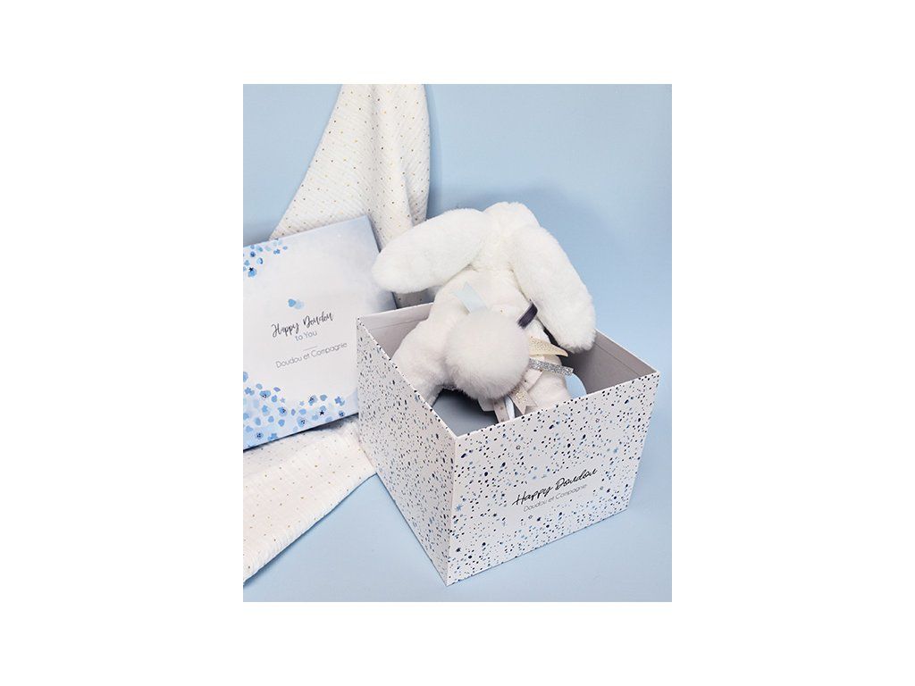 Doudou Darčeková sada - Plyšový zajačik s bielym brmbolcom 25 cm