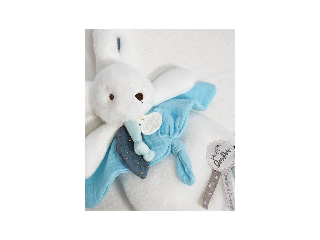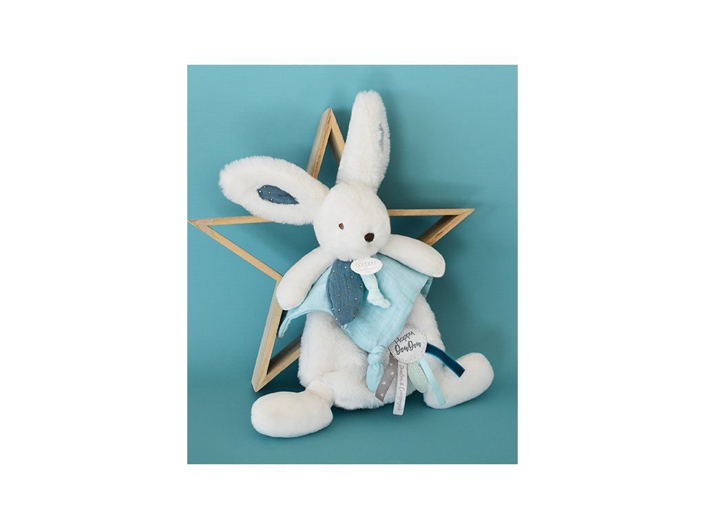 Doudou Darčeková sada - Plyšový zajačik s muchláčikom 25 cm modrá