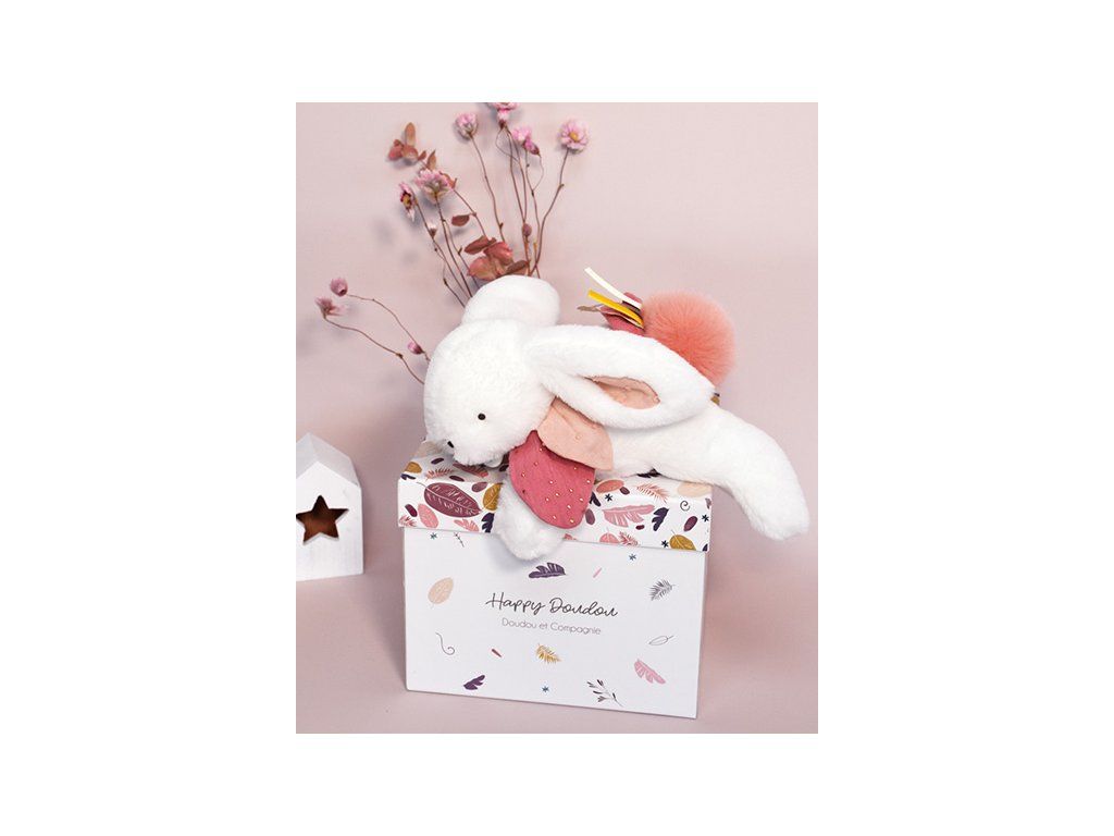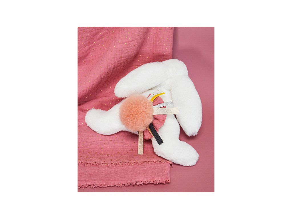 Doudou Darčeková sada - Plyšový zajačik s tmavo ružovým brmbolcom 25 cm