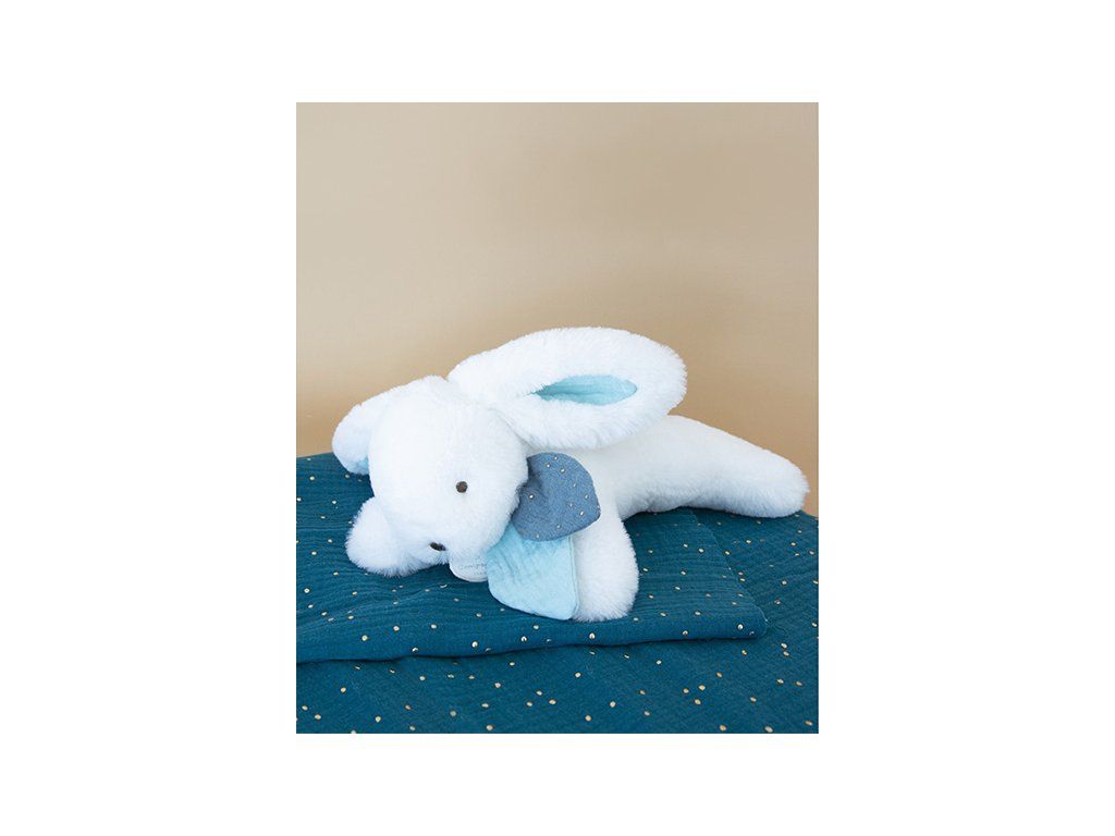 Doudou Darčeková sada - Plyšový zajačik s tmavomodrým brmbolcom 25 cm