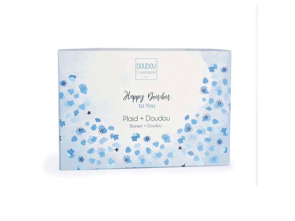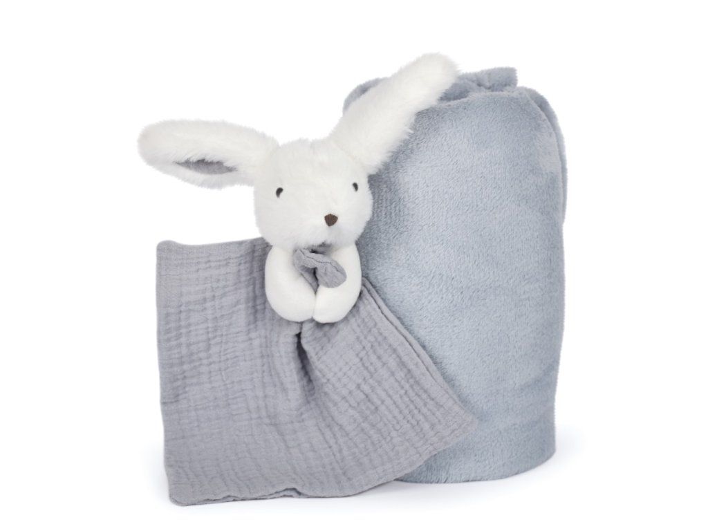 Doudou Darčeková sada šťastný králiček pléd a modro-sivý muchláčik
