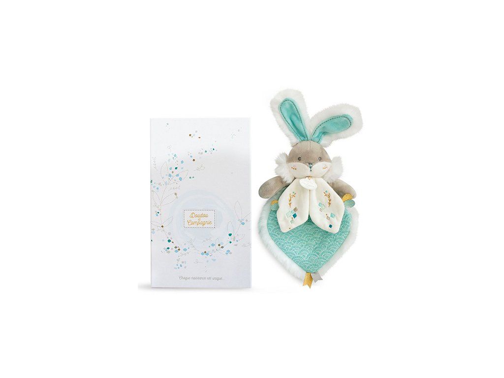 Doudou Darčeková sada - tyrkysový plyšový zajačik a púzdro na plienky