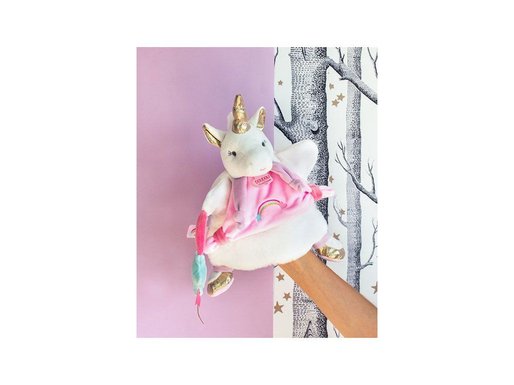 Doudou Plyšová maňuška jednorožec 25 cm