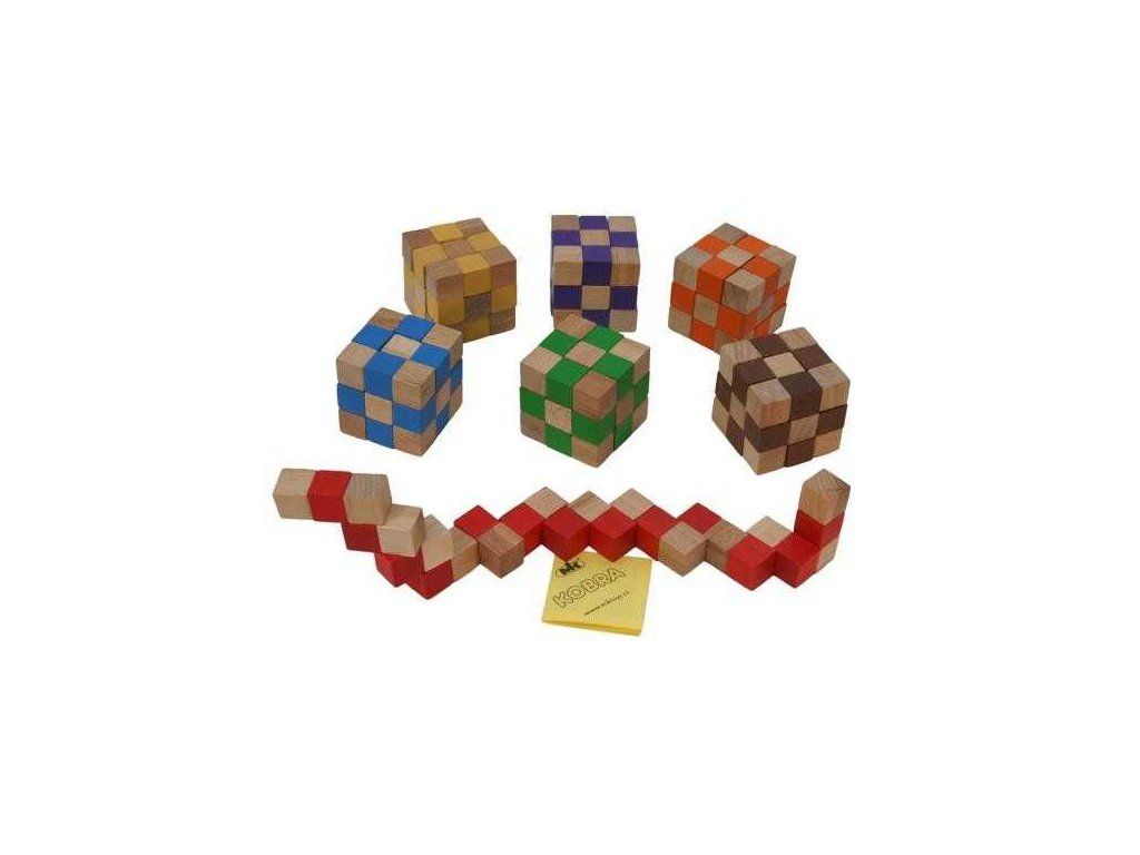 Drevený hlavolam kocka modrá