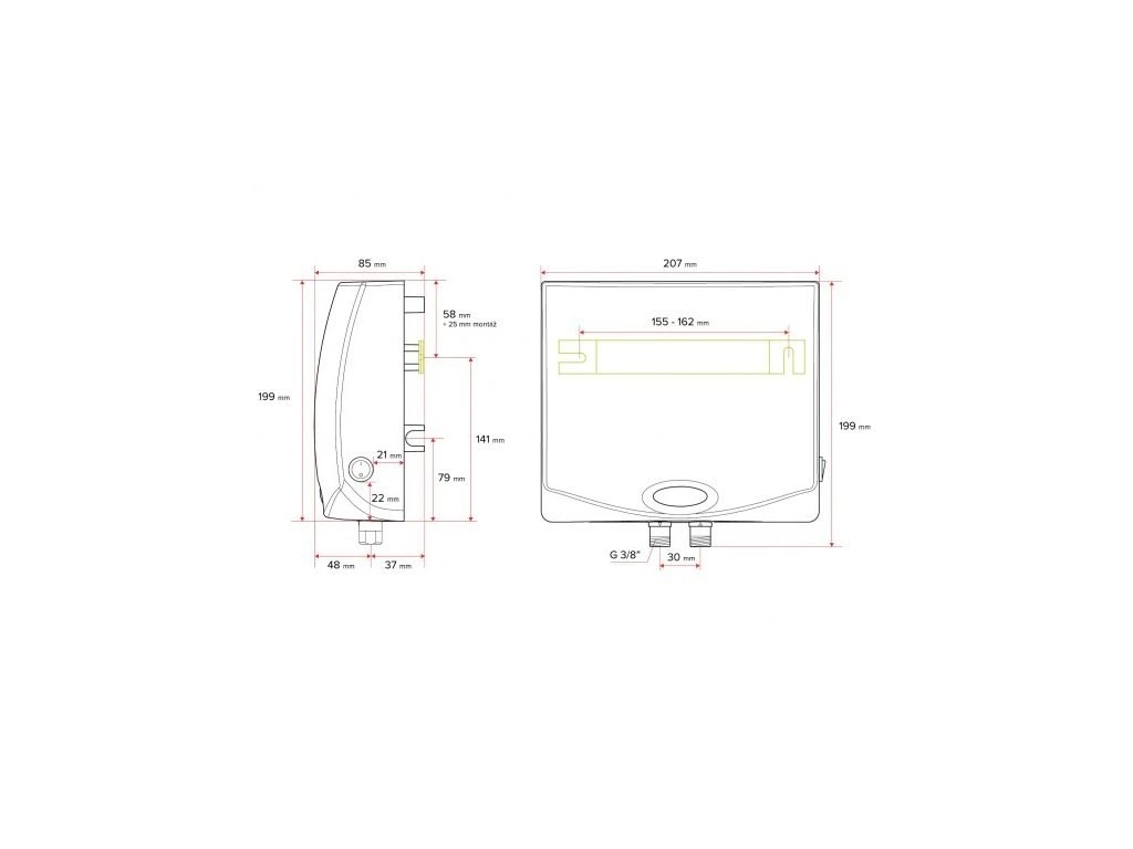 elektrický prietokový ohrievač vody s voliteľným výkonom, elektronickým spínaním a tlakovou prevádzkou MKX 3,5/5,5kW