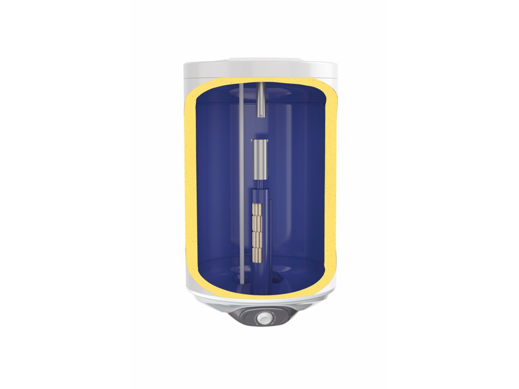 Nádrž ohřívače vody je vyrobena z vysoce kvalitní oceli chráněné vrstvou zirkonového smaltu. Vysoce kvalitní 33 mm silná polyuretanová izolace bez obsahu freonů zajišťuje nízké tepelné ztráty a úsporu nákladů na ohřev vody. Pomocí termostatu umístěného na ovládacím panelu můžete nastavit teplotu vody v rozmezí 7 - 75 °C s možností nastavení režimu ECO. Při nastavení úsporného režimu se voda ohřívá na optimální teplotu 55 stupňů C, což snižuje tepelné ztráty a spotřebu elektrické energie. Minimální hodnota termostatu slouží jako ochrana proti zamrznutí vody v ohřívači. Ohřívač má zabudované dvě anodové tyče, které zaručují účinnou ochranu nádrže proti korozi a výrazně prodlužují její životnost. Vypínač s kontrolkou topení slouží k zapnutí/vypnutí topení v naší nepřítomnosti, což umožňuje úsporu energie.