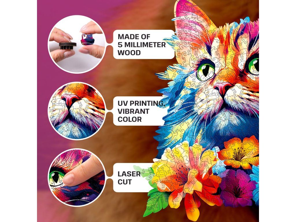 EscapeWelt Drevené puzzle Mačka 200 dielikov