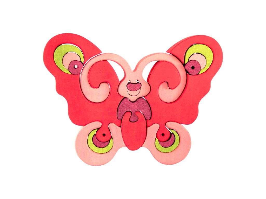 Fauna Drevené vkladacie puzzle z masívu motýľ ružový