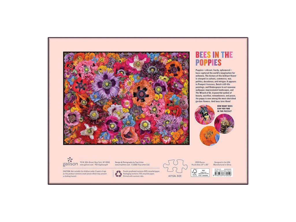 Galison Puzzle Včely medzi kvetmi maku 1000 dielikov