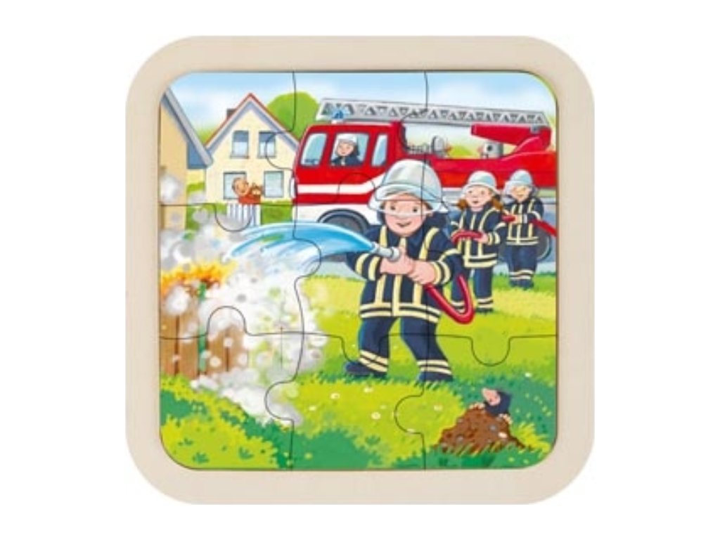 GOKI Dřevěné puzzle Hasiči 9 dílků