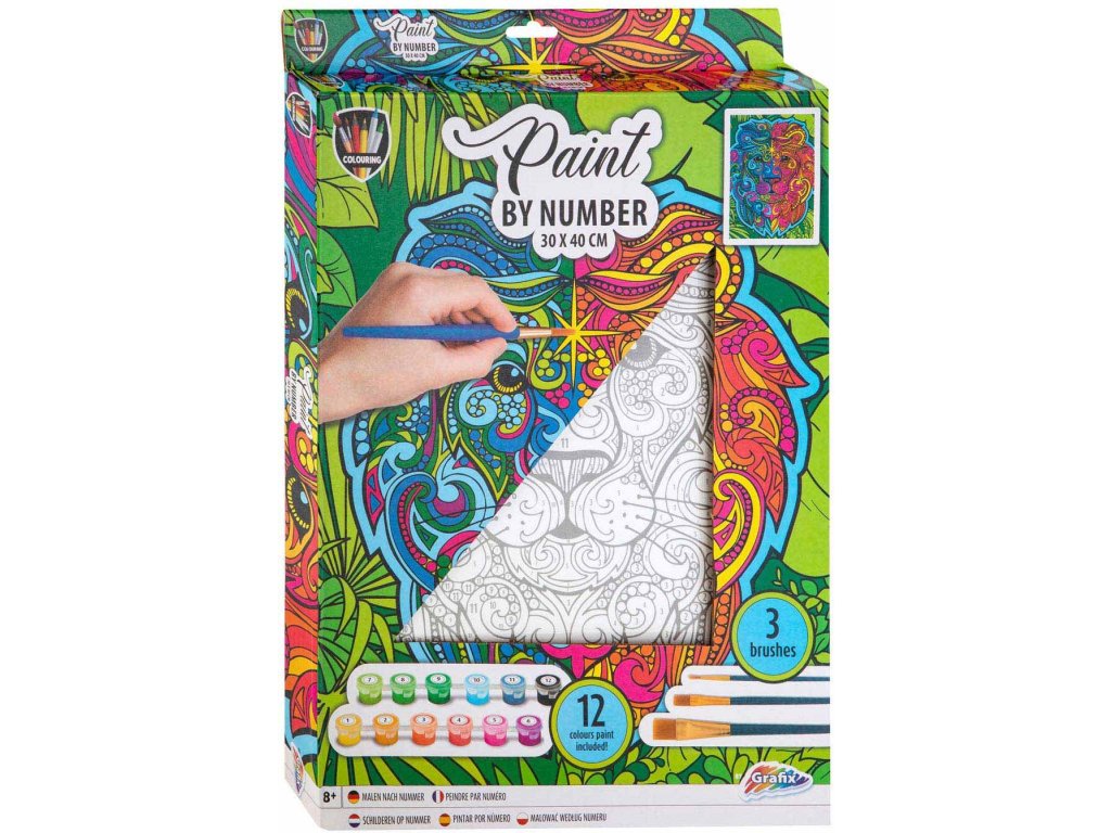 GRAFIX Malování podle čísel: Lev, plátno na rámu 30x40cm