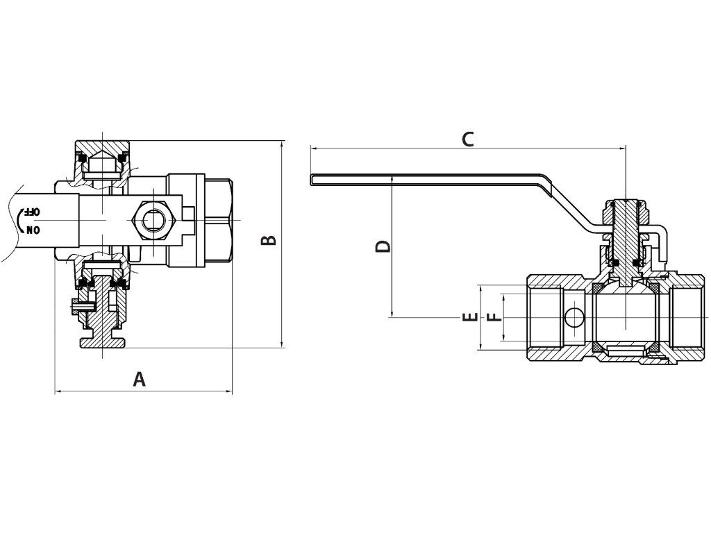 guľový ventil s vypúšťaním FF, páka, PN25, 2"