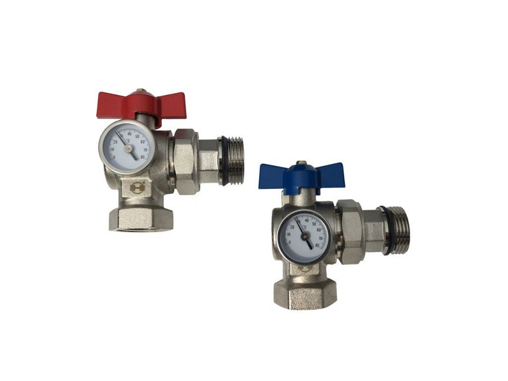 H-LINE set 1" rohových guľových ventilov MFM s teplomerom a šróbením