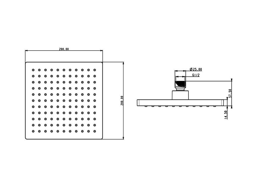 HERZ Sprchová hlava štvorcová, 200x200mm, SQ BLACK, čierna
